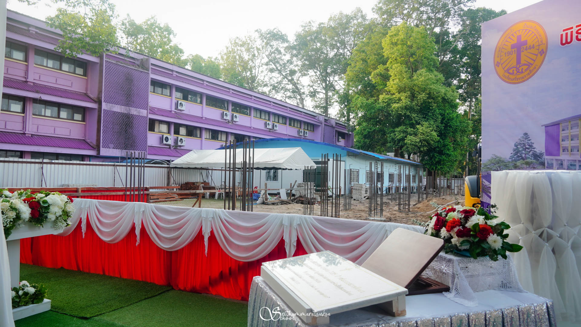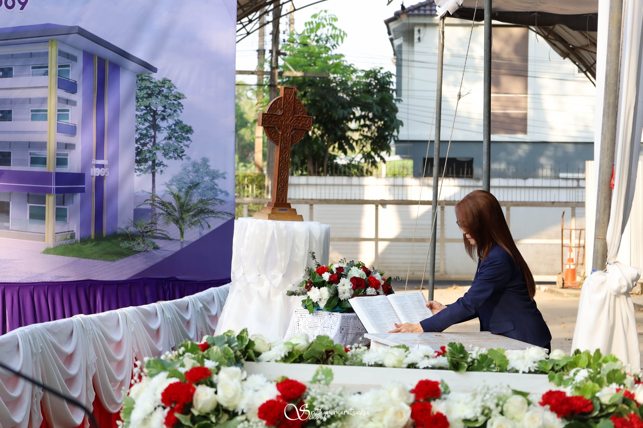 เพื่อความเป็นสิริมงคลและเป็นจุดเริ่มต้นของการก่อสร้างอาคารแห่งประวัติศาสตร์ อันสะท้อนถึงความกตัญญูและการวางรากฐานการศึกษาภายใต้พระพรขององค์พระผู้เป็นเจ้า