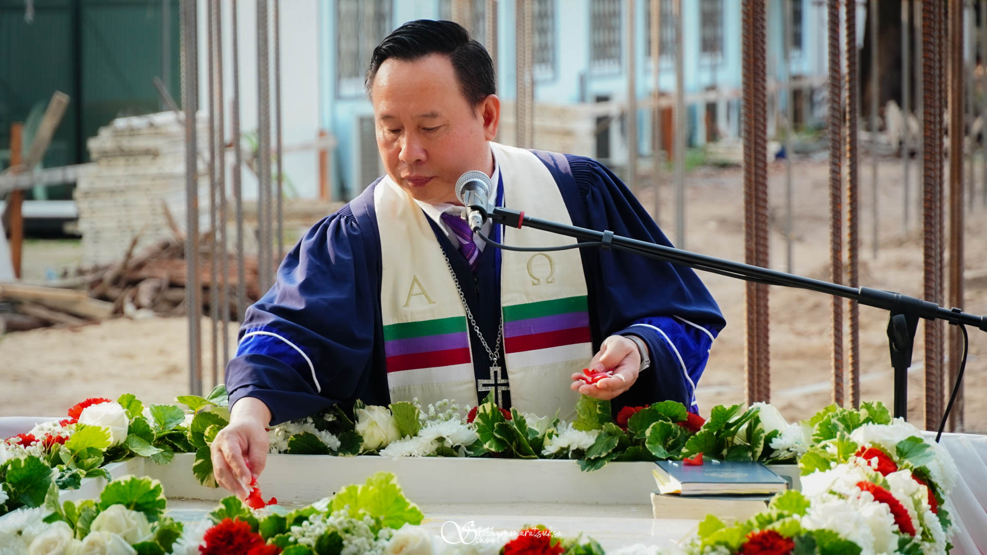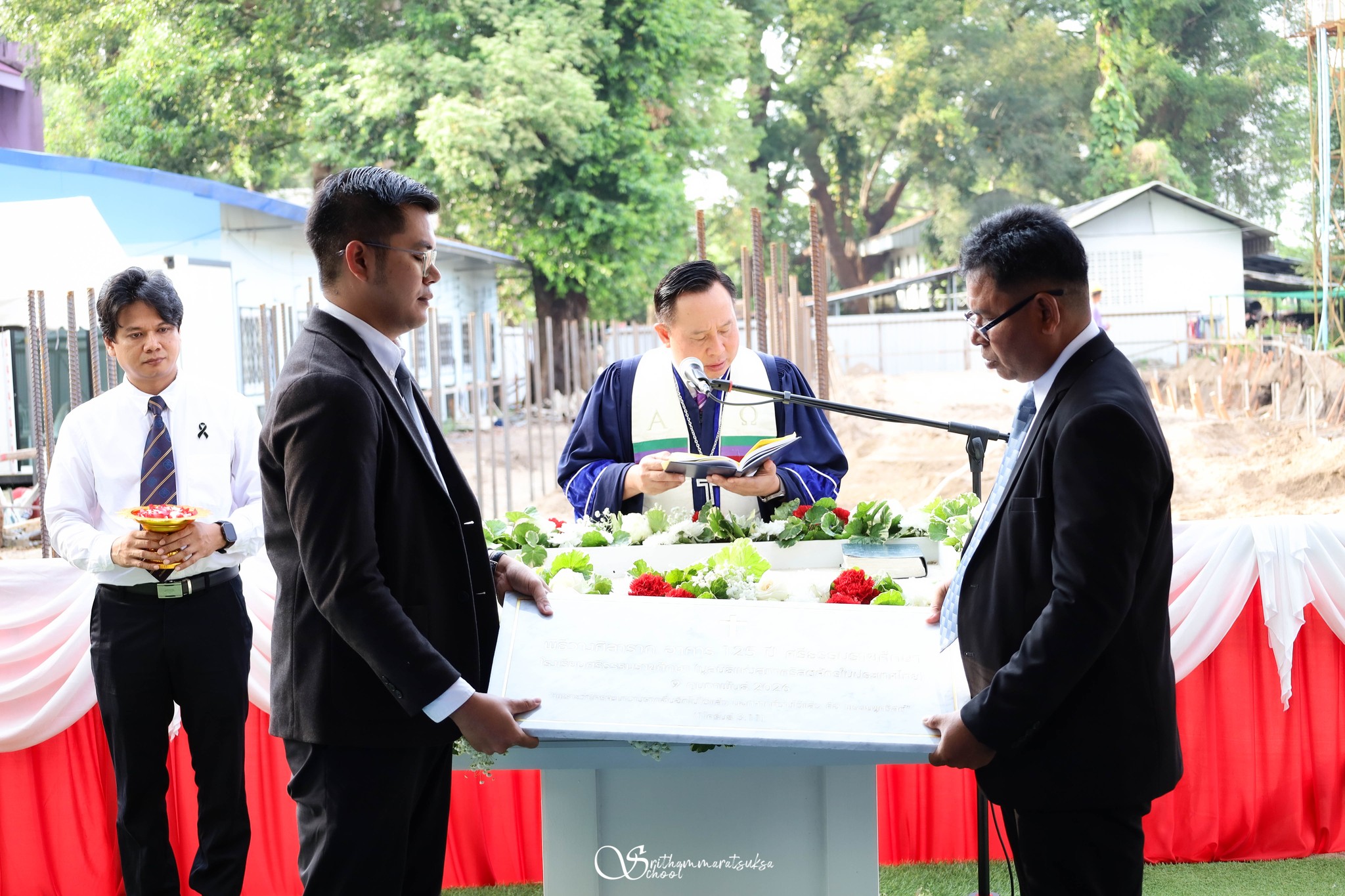 🏫 ประกอบพิธีวางศิลารากอาคารซาโลมอน โดย ศาสนาจารย์กิตติวุฒิ ยาปัน ผู้แทนผู้รับใบอนุญาตและประธานกรรมการบริหารโรงเรียน