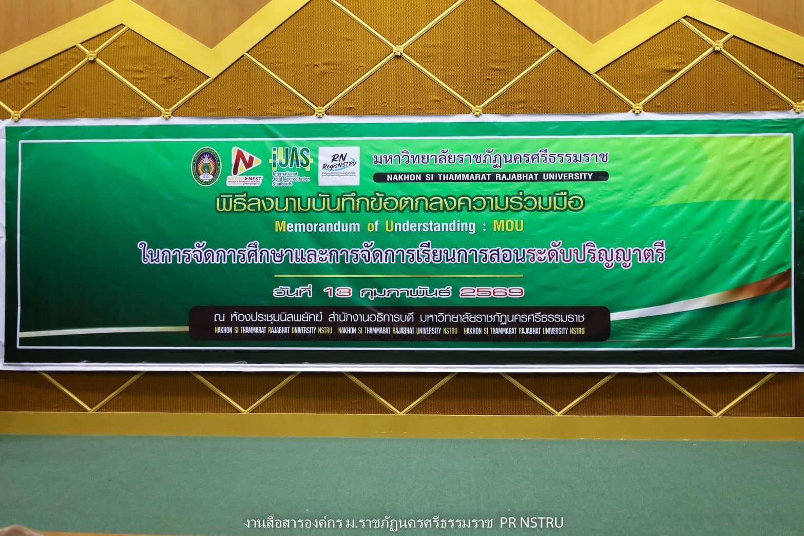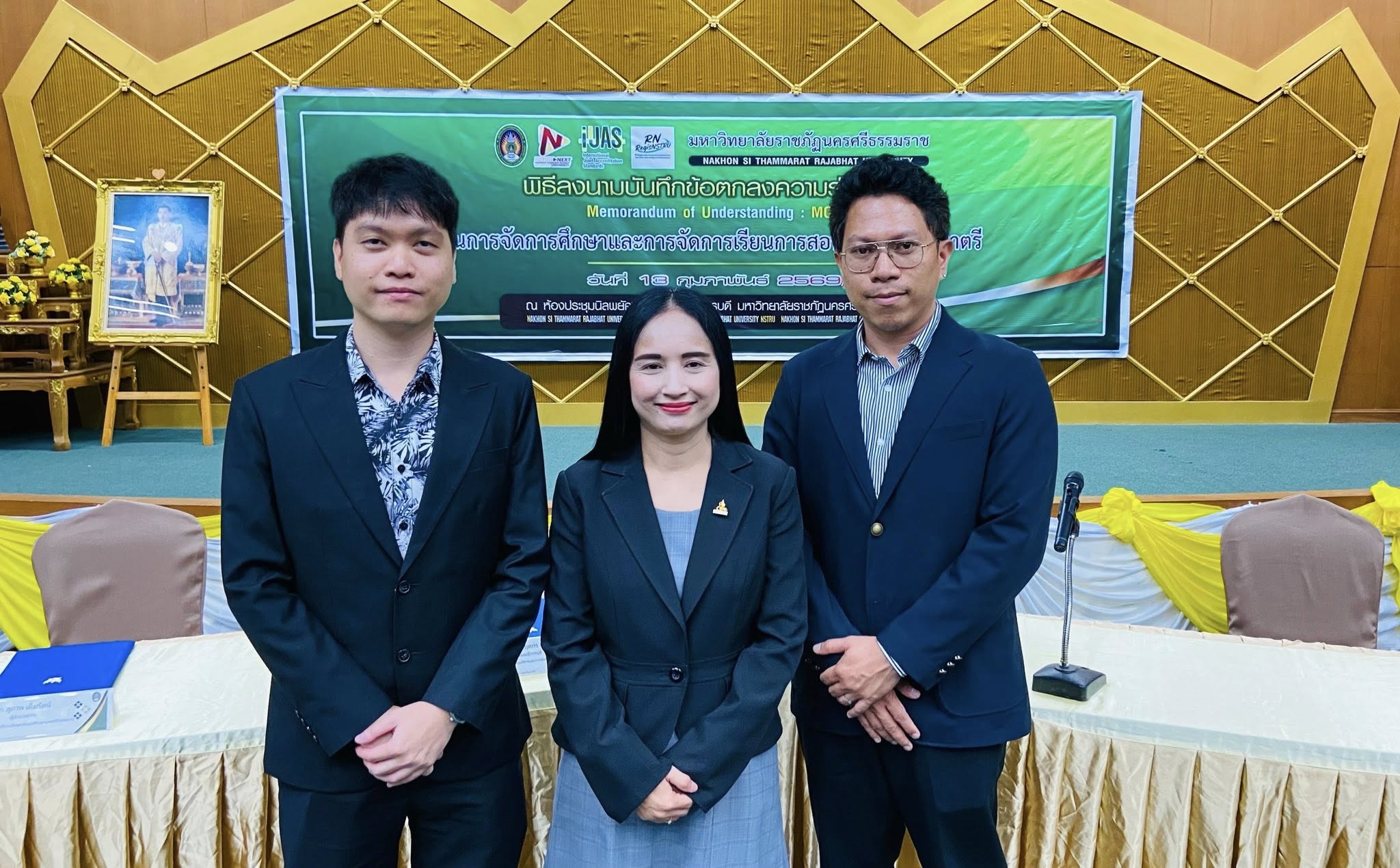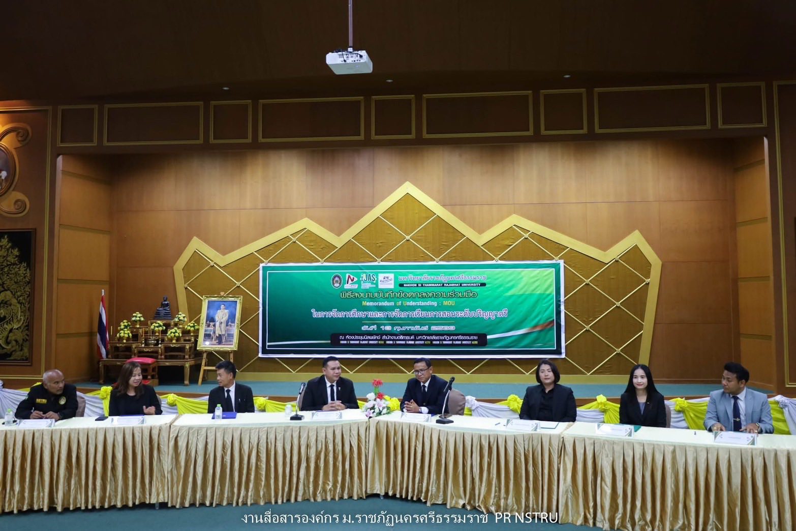 ในการนี้ ได้รับเกียรติจาก ดร.สมปอง รักษาธรรม อธิการบดี พร้อมด้วยคณะผู้บริหารมหาวิทยาลัย ร่วมลงนามความร่วมมือกับผู้แทนผู้บริหารจากโรงเรียนศรีธรรมราชศึกษา ได้แก่ ดร.จุฑาภรณ์ เต่าคำ ผู้ช่วยผู้อำนวยการฝ่ายวิชาการและพัฒนาคุณภาพการศึกษา โครงการ English Programme นายณัฏฐ์ มิตรกูล หัวหน้างานแนะแนว แผนกมัธยมศึกษา นายมรุต มากขาว หัวหน้างานแนะแนว โครงการ English Programme