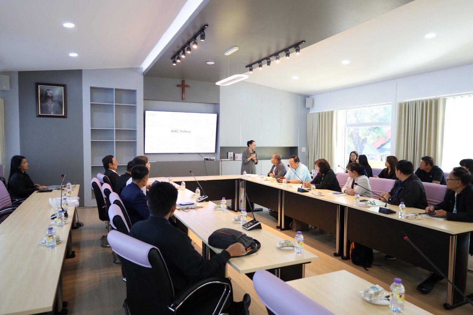 การเยี่ยมเยียนในครั้งนี้จัดขึ้น ณ ห้องประชุมลูกา อาคารที่ระลึกคุณครูพลอด ณ นคร